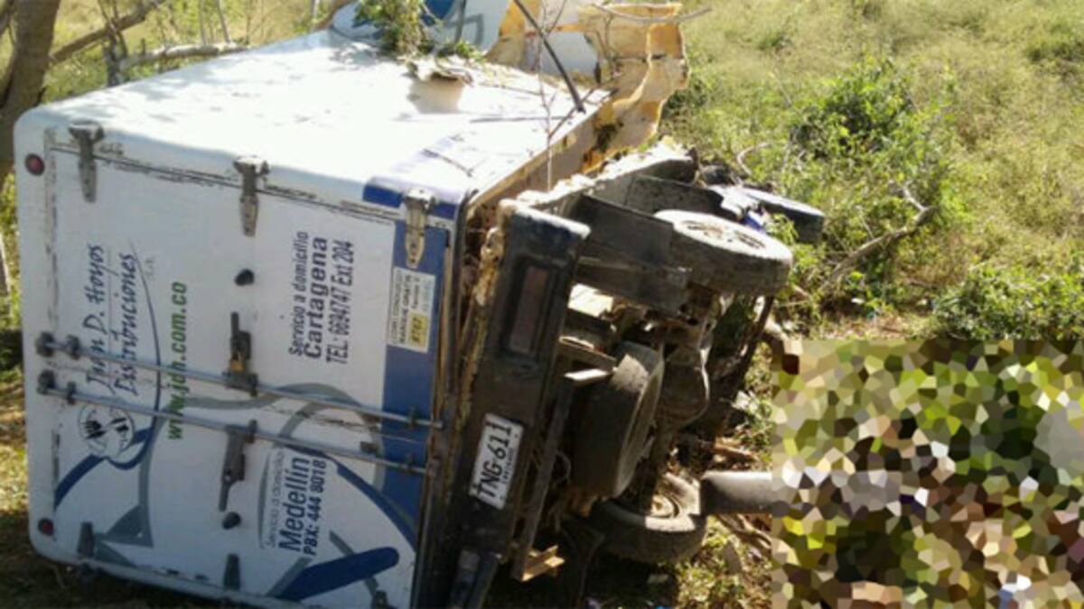 Un hombre muerto y otro herido dejó el volcamiento de un camión, tipo furgón, en el kilómetro 61 de la Vía al Mar.