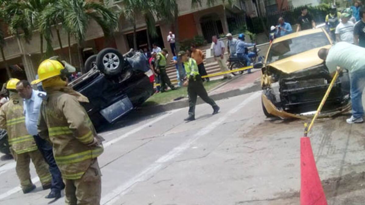 La camioneta, al ser chocada por el automóvil de servicio público, dio una voltereta y quedó volcada sobre la calle 82, lo cual generó un caos vehicular en este punto álgido de la ciudad, en pleno inicio de la hora pico.