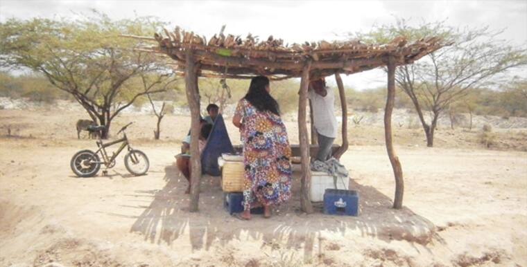 Ante la grave crisis por la escasez de comida y agua en la Alta Guajira, los indígenas wayuu volvieron a elaborar cacimbas, una práctica ancestral para encontrar agua que consiste en la elaboración de pozos artesanales con escaleras de barro. Para ello están cavando a la orilla del mar, con el fin de encontrar así sea un poco de agua que les calme la sed.