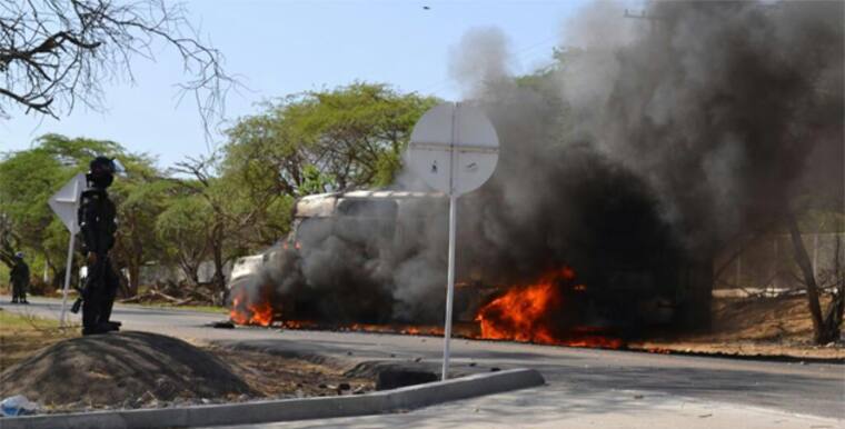 Bus quemado a las afueras de la Universidad de La Guajira.