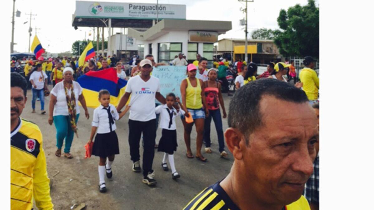 Con una marcha por hasta la zona conocida como La Raya, en Paraguachón, los habitantes de esta población exigieron la mañana de este jueves la presencia del presidente Juan Manuel Santos en esa zona fronteriza para que conozca la crisis que se vive en esta zona fronteriza con el estado Zulia.