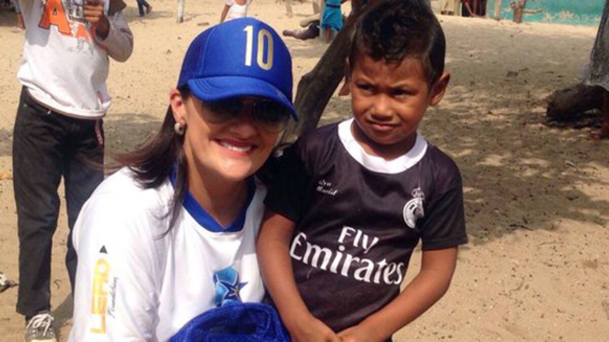 Para hacer entrega de 13 mil botellas de agua, juguetes a los niños y paquetes alimenticios, estuvo en La Guajira la mamá del jugador, María del Pilar Rubio, quien dijo que su hijo estuvo en todo momento pendiente de la actividad a través de fotos y videos que le enviaban.