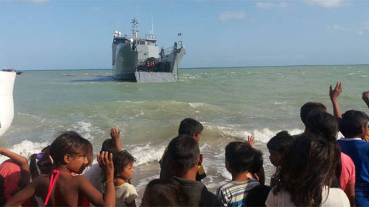 Comunidad wayuu de Manaure fue testigo del arribo a la playa Piedras Blancas de la enorme embarcación. Allí, cientos de niños gritaron la arenga ¡agua, agua, agua! para recibir el navío que hará en carrotanques la entrega del recurso a la comunidad indígena Ishashimana.