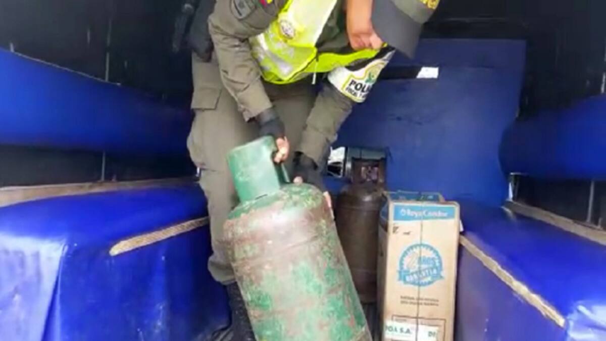 'En este sector los contrabandistas pretendían burlar los controles policiales, ya que los cilindros iban camuflados entre otros que sí contenían gas', explicó el comandante de la institución coronel Tito Castellanos Tuay.