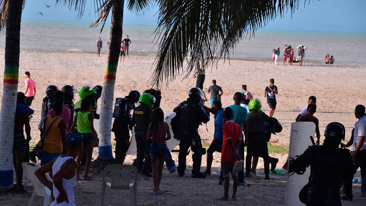 Este caso fue atendido por el Esmad que llegó a control este acto de agresión que puso en peligro la vida de bañistas en el sector del muelle de Riohacha, ya que los jóvenes involucrados en la riña lanzaron piedras, botellas, palos y otros objetos contundentes a la Policía antidisturbios que buscaba restablecer el orden en la zona.