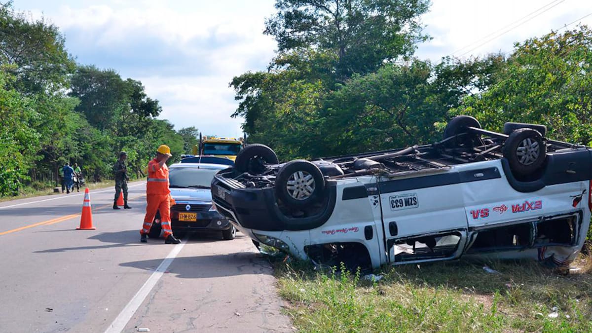 Siete personas que viajaban a bordo de una buseta de la empresa Almirante Padilla S.A. resultaron con heridas de consideración luego de que el automotor se saliera de la vía y diera vueltas sobre su propio eje, quedando con las llantas hacia arriba.