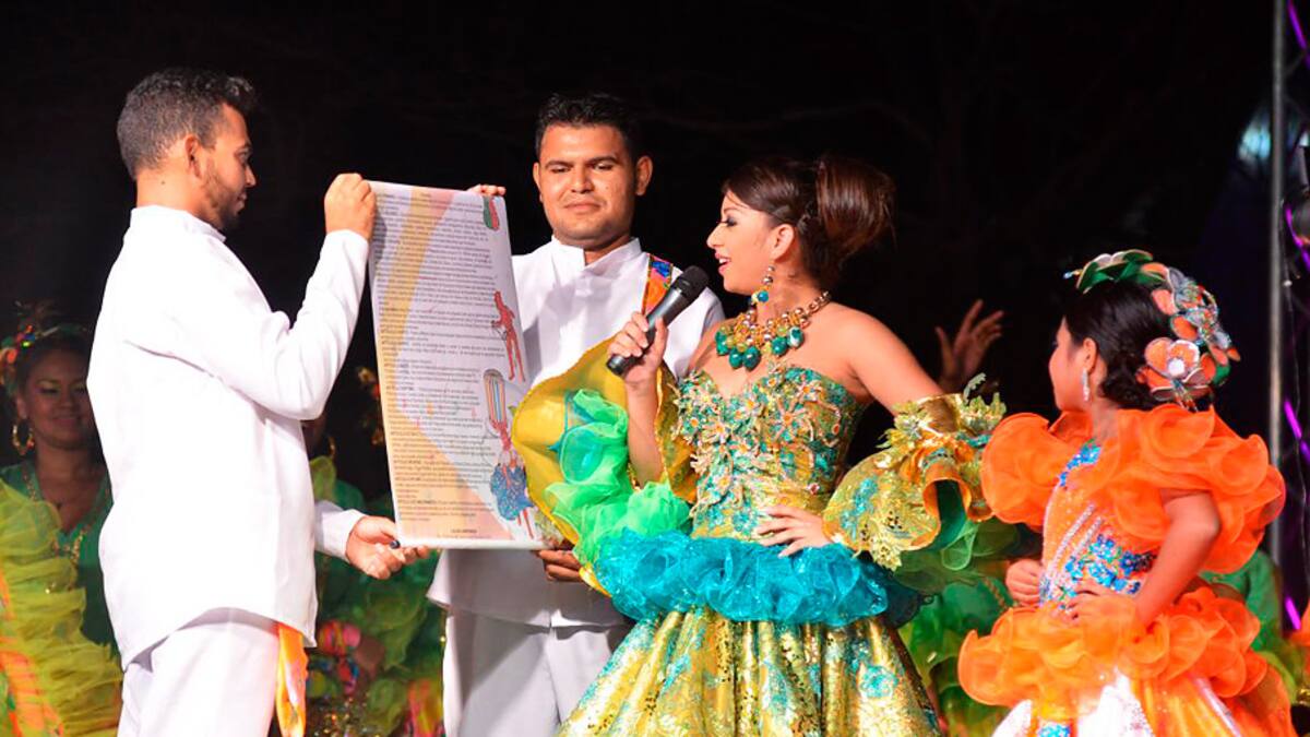 A carnavalear, champetear y pilonear, ordenó la reina del carnaval de Riohacha Laura Zimmerman durante la lectura del bando que se cumplió en la plazoleta del Liceo Padilla.