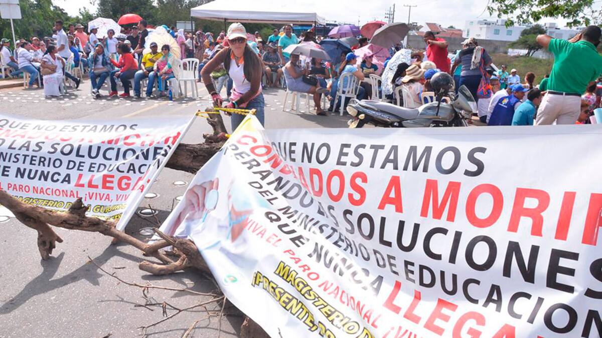 En la vía que conduce a Maicao a la altura del colegio Elión Pinedo se mantiene un grupo de docentes.