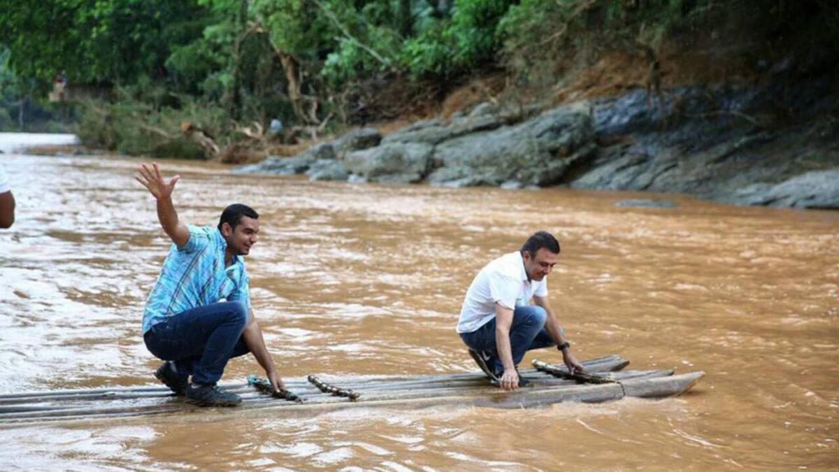 El mandatario anunció la construcción de un puente militar, en coordinación con el Ejército, para reemplazar la estructura de concreto que arrasó la corriente en la madrugada del lunes, lo que incomunicó a Versalles con el resto del municipio y del Departamento.