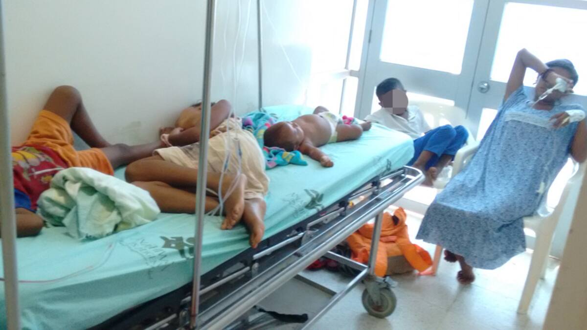 Los problemas para estas dos familias empezaron a las ocho y nueve de la noche. Había vómitos, diarrea y fuertes dolores en el estómago. Inicialmente no pensaron que fuera tan delicado, pero cuando eran las once de la noche la mayor parte de los nueve niños afectados no soportaba el dolor en el estómago, ni las diarreas. Tampoco los cuatro mayores que también fueron intoxicados, entre ellos una de las madres. A esa hora buscaron un camión para transportarse hasta Riohacha donde llegaron a medianoche al hospital donde les dieron el tratamiento adecuado y hacia las once de la mañana de este viernes les dieron de alta.