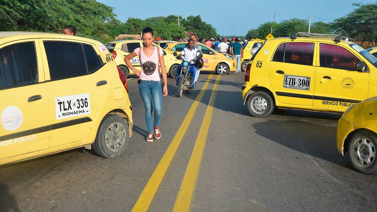 Totalmente bloqueada amaneció la ciudad de Riohacha por la protesta de los taxistas de varias cooperativas que operan en esta capital, quienes piden que se combata el transporte ilegal.