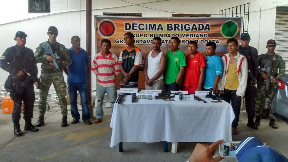 Según informó el Ejército la diligencia de allanamiento se llevó a cabo en una vivienda donde se encontraban Eduardo Enrique Iguarán Iguarán de 27 años de edad, oriundo de Venezuela, Reimundo Pushaina Palmar de 46 años, oriundo del municipio de Manaure, José Segundo Pushaina de 30 años, de Uribia, Wilson de Jesús Arévalo de 51 años, de Barrancas, Jonathan Guerrero Arévalo de 34 años, de Maicao, Jorguin Miguel González Peña de 22 años, de Venezuela, José Agustín Cardales de 27 años, oriundo de Cartagena y Leonardo Morales Epiayu de 25 años, sin determinar el lugar de procedencia, ya que no se halló en su poder los documentos de identificación.