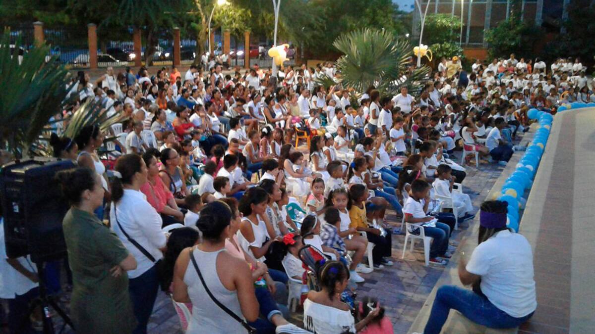 En Riohacha se unieron todas las parroquias en el parqueadero de la Biblioteca Virtual Héctor Salah Zuleta donde asistieron unos 200 niños.