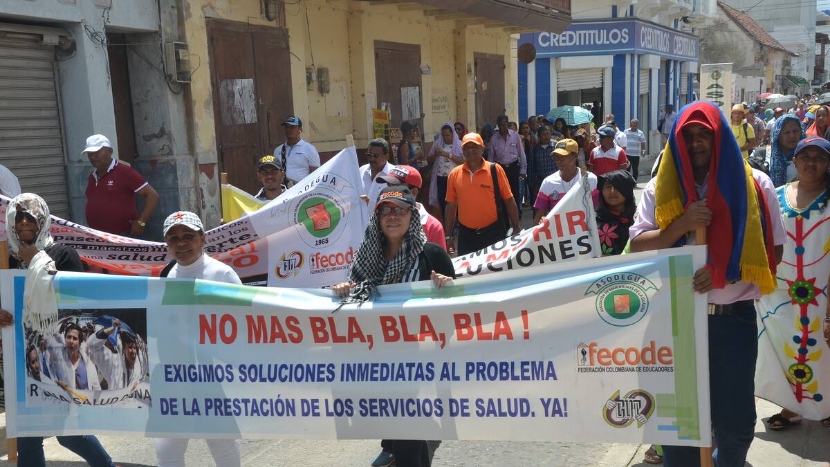 Durante el cese de actividades que por 24 horas convocó Fecode, los docentes de La Guajira marcharon por las principales de Riohacha, para protestar por la atención que en materia de salud reciben.