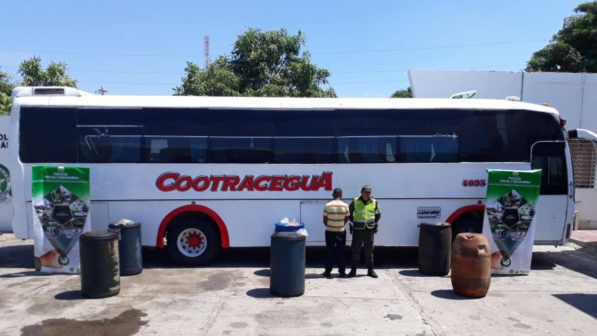 La Policía Fiscal y Aduanera en coordinación con el Ejército incautó seis buses de servicio interdepartamental en los que se transportaban 1.010 galones de combustible ilegal por diferentes vías del departamento de La Guajira.