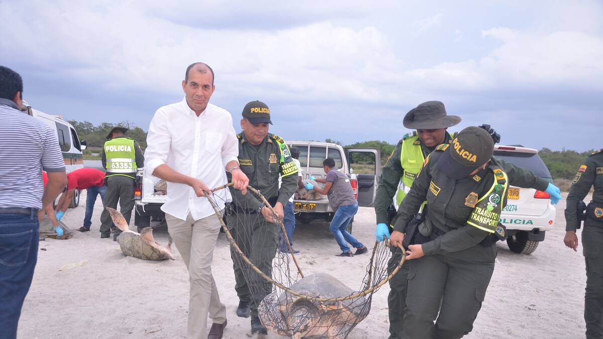 La Policía nacional rescató 16 tortugas marinas que iban amarradas en una camioneta y las cuales pretendían ser comercializadas en el municipio de Maicao.