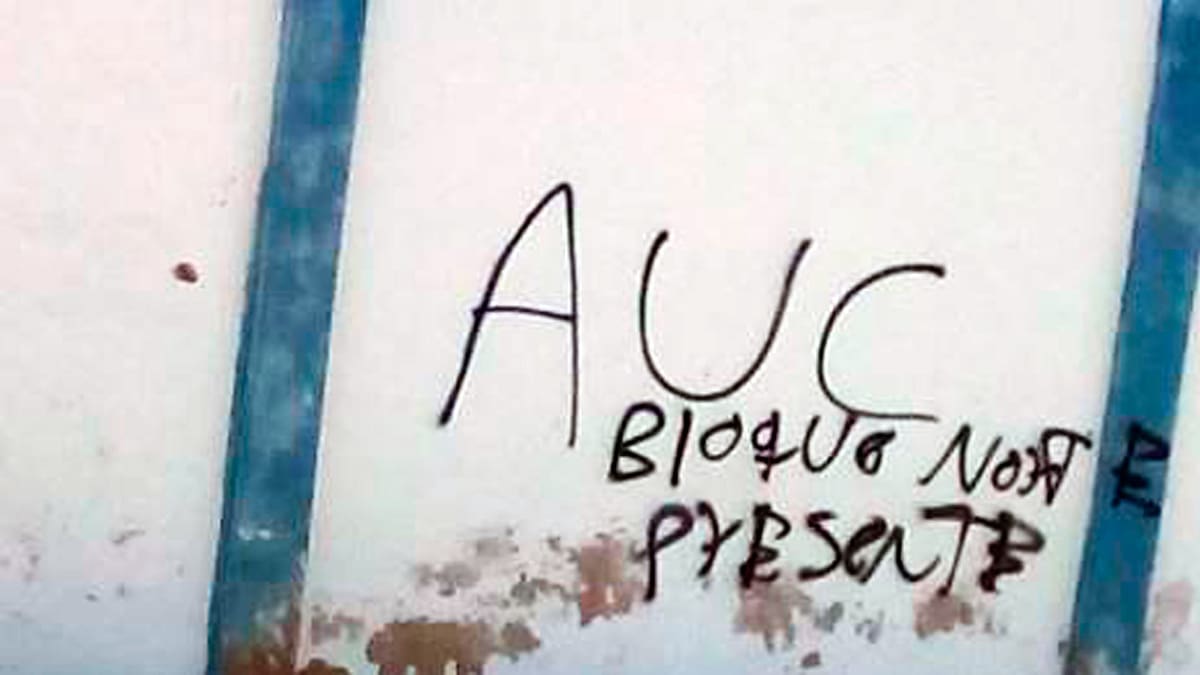 'Se está considerando que en este sector hay personas que consumen alucinógenos que podrían haber realizado los grafitis con el fin de crear temor, pero le damos tranquilidad a la comunidad, porque aquí no hay AUC', aseguró.