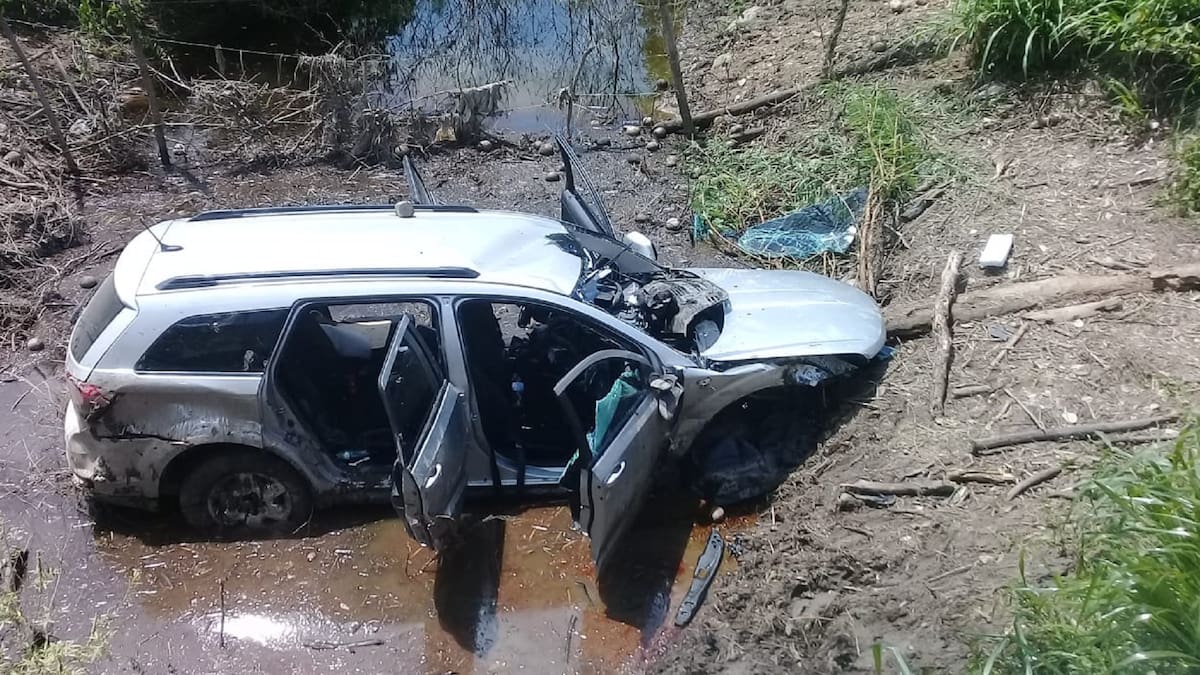 De acuerdo con el reporte de las autoridades de tránsito, la camioneta marca Dodge de color plateado y placas MPM-276 se salió de la vía por un viraje del conductor, al parecer, para esquivar uno de los huecos en la carretera. El vehículo se fue por una orilla, golpeó en la cabecera de la cuneta y luego cayó a una altura de tres metros aproximadamente.