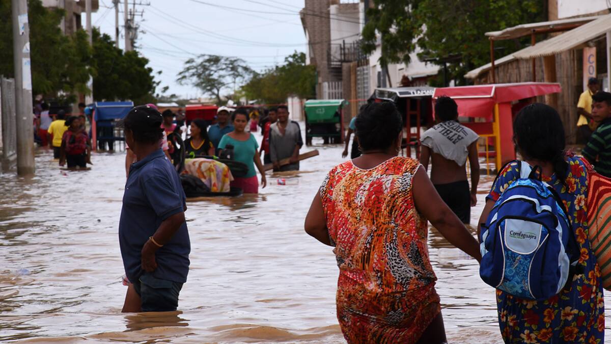 Uno de los más golpeados es Uribia, donde el número de familias afectadas del invierno crece a cada momento por las fuertes lluvias que siguen cayendo sobre esta parte de la península de La Guajira.