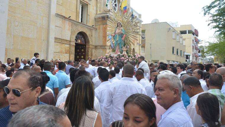 La programación comenzó a las seis de la mañana con la primera eucaristía, los hombres recibieron la vela en la catedral, luego las personalidades asistieron al tradicional desayuno que ofrece la Administración distrital, posteriormente los fieles y visitantes caminaron la procesión y a las once de la mañana fue la misa principal presidida por el arzobispo de Riohacha, monseñor Héctor Salah Zuleta.