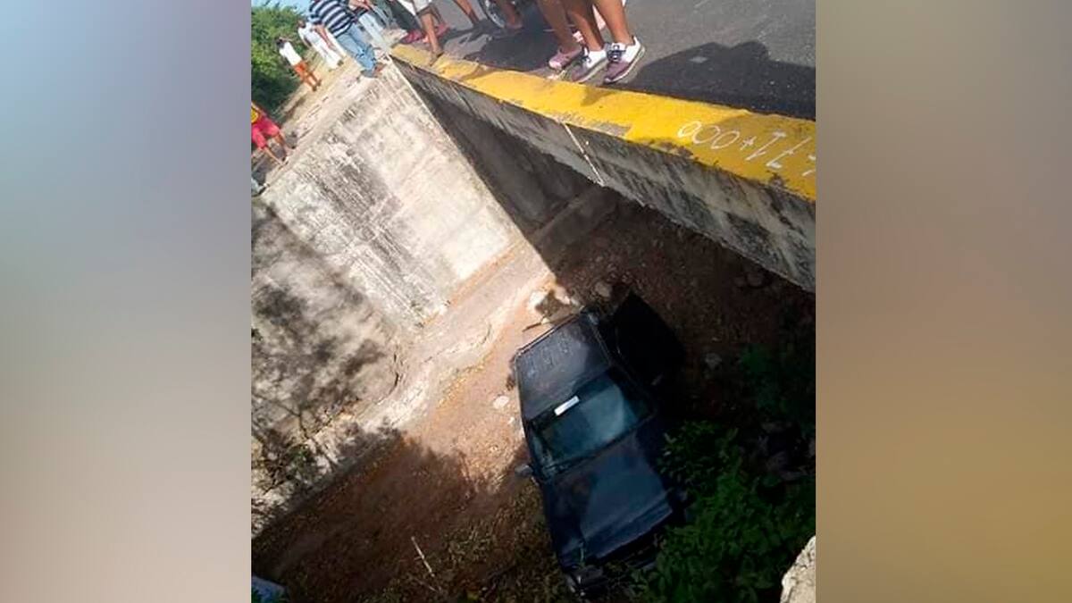 Testigos denunciaron que cuando los delincuentes hicieron aparición en la carretera, un conductor que se percató del hecho empezó a dar marcha en reversa a gran velocidad para evadir a los delincuentes, pero perdió el control del automóvil y cayó a un canal que tiene cerca de tres metros de profundidad.