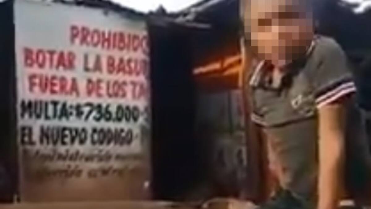 El video en Maicao muestra inicialmente a un menor arrastrando dos bolsas plásticas, mientras una mujer escarba entre la basura. Luego se ve a otro menor subido al contenedor. A un lado, los restos de pescado.