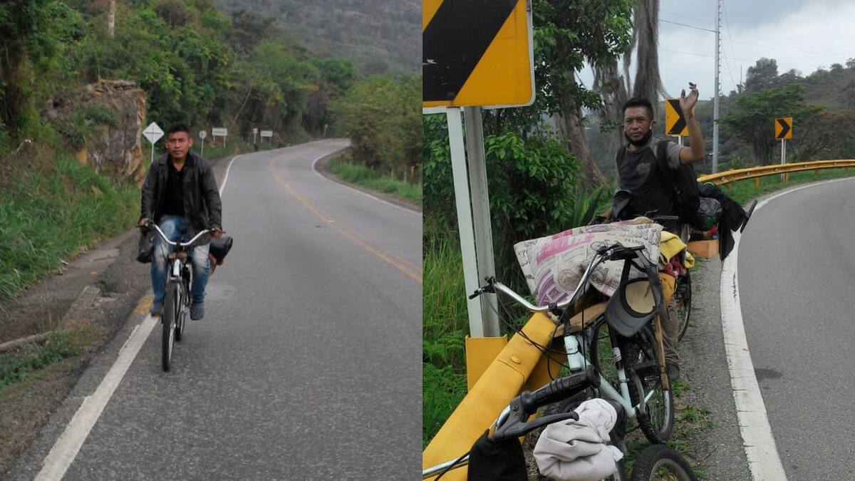 'A pesar de todo fue un viaje bacano', dice Duvis Gouriyú, uno de los viajeros, quien junto a sus compañeros de aventura, que también son sus familiares, decidió montarse en su bicicleta y salir de la capital del país, donde no encontraba nada qué comer o cómo mantenerse.