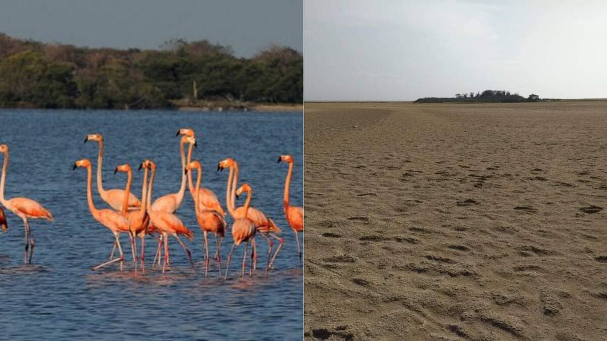 Hoy de las mansas aguas sobre las que se recreaban y alimentaban los rosados y gigantes pájaros no queda nada, solo hay polvo amarillo y tierra cuarteada que hace inferir que en algún momento hubo agua.