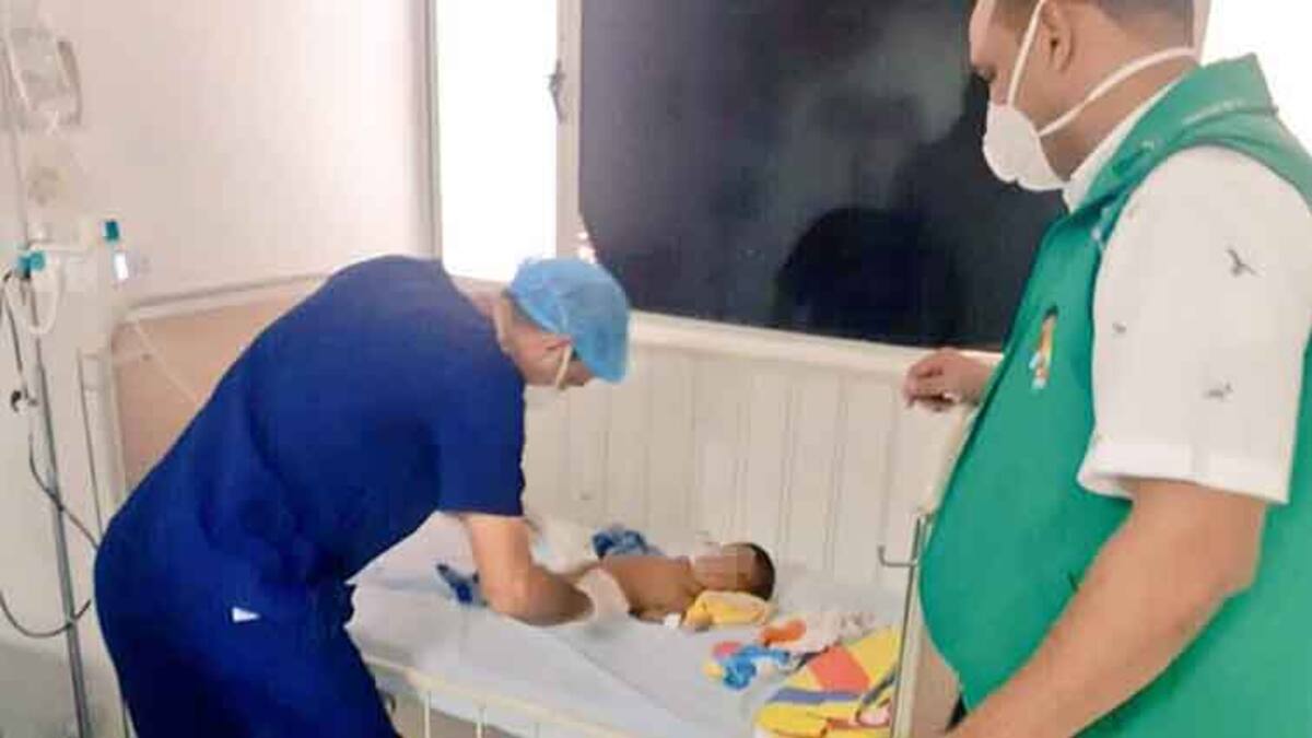 Desde Maicao se informó que el menor, quien estaba sobre una cobija, presenta un cuadro de desnutrición severa, por lo que está siendo atendido por un pediatra del ICBF en el hospital San José de esta población guajira. El instituto también informó que la Defensoría de Familia del Centro Zonal de Maicao realiza el seguimiento al caso para restablecer sus derechos.