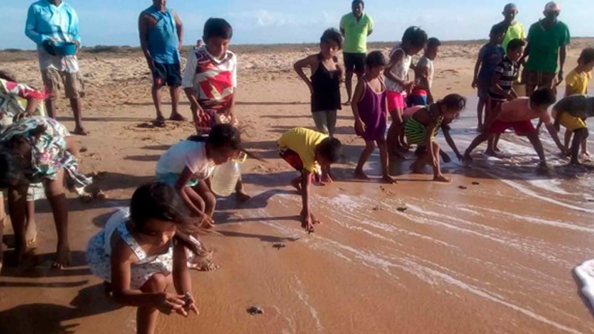 En la comunidad indígena wayuu de Bahía Hondita, en el municipio de Uribia, se liberaron 211 tortugas recién nacidas, que inician así su ingreso al mar Caribe, donde continuarán su desarrollo.