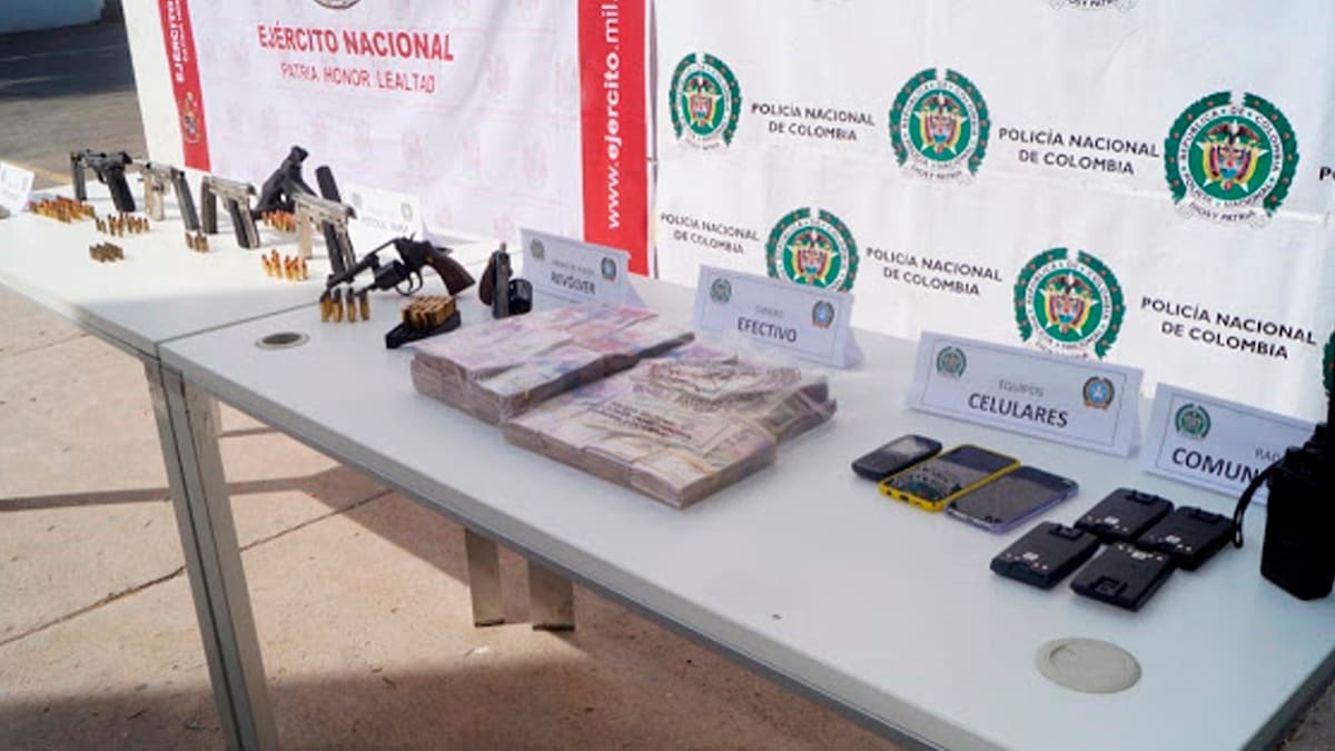 En el operativo, los policías encontraron cinco tres armas de fuego de las cuales tres son de procedencia ilegal, además había en el inmueble 11 proveedores para pistolas, 147 cartuchos de diferentes calibres, dos radios de comunicación, tres celulares, $215 millones de pesos en efectivo y 194 dólares, de los cuales no hubo una explicación válida para portarlos.