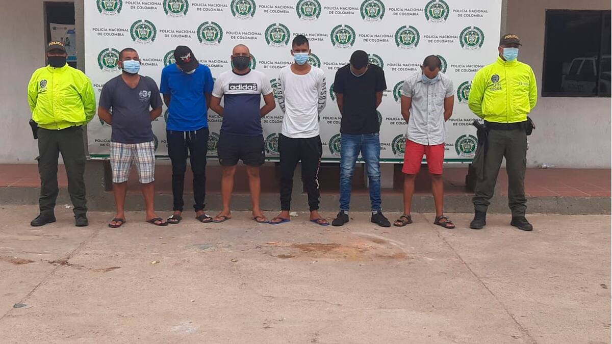 Mediante diligencias de allanamientos y registro ordenados por la Fiscalía 01 Seccional de Riohacha, se logró la captura de Jackson José Sierra Suárez, alías ‘Toreto’, Jorge Armando Gabalo Castelar, alías ‘Papitas’, David Enrique Ruedas Sangronis, Josner José Álvarez Báez, Diomar Daniel Conde Morillo, y Calixto Oiden Murgas Lubo, quienes son requeridos por el Juzgado Segundo Penal Municipal con funciones de Control de Garantías Ambulante Bacrim, por los delitos de concierto para delinquir y fabricación, tráfico o porte de estupefacientes. La Policía que estaba al tanto de los movimientos del grupo delincuencial los identifica como ‘Los Neptuno’.