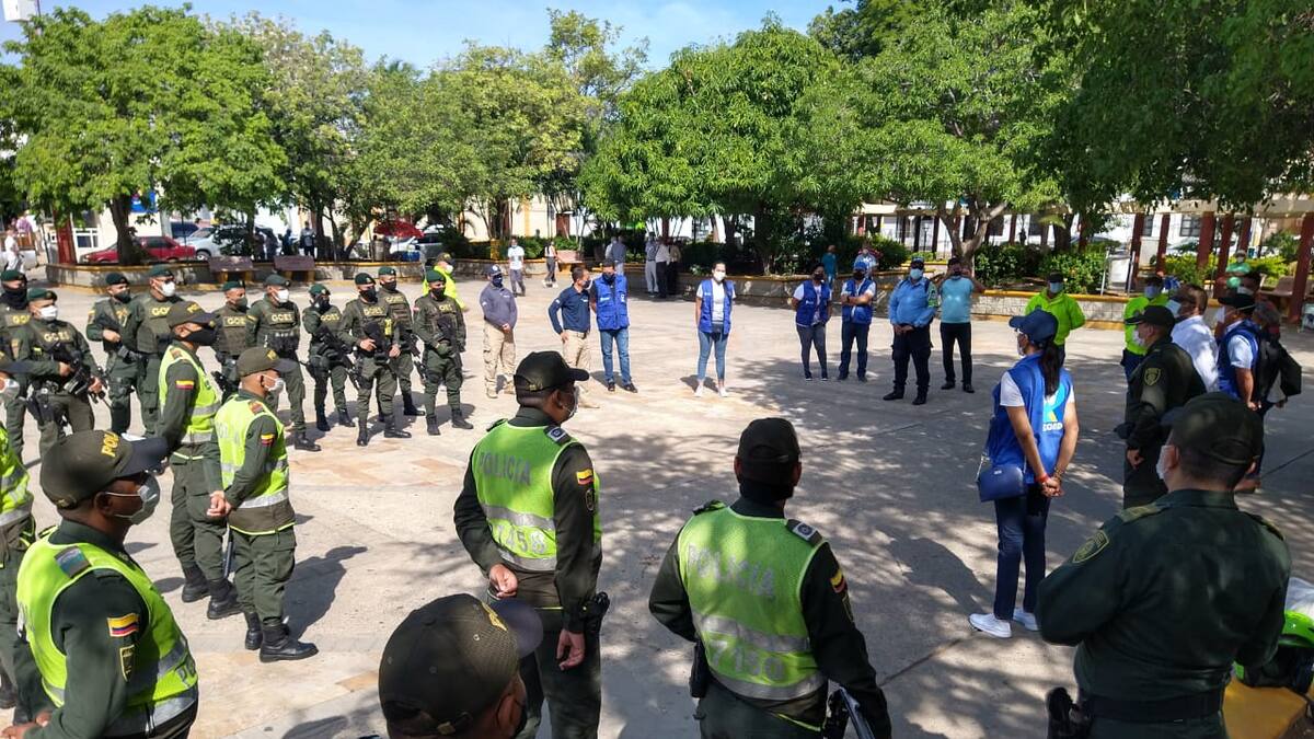 Con una presencia policial pocas veces vista en actitud de vigilancia, amaneció el centro de Riohacha, principalmente la zona bancaria donde se dieron cita varias especialidades de la Policía, la Alcaldía y Migración Colombia entre otras instituciones del Estado.