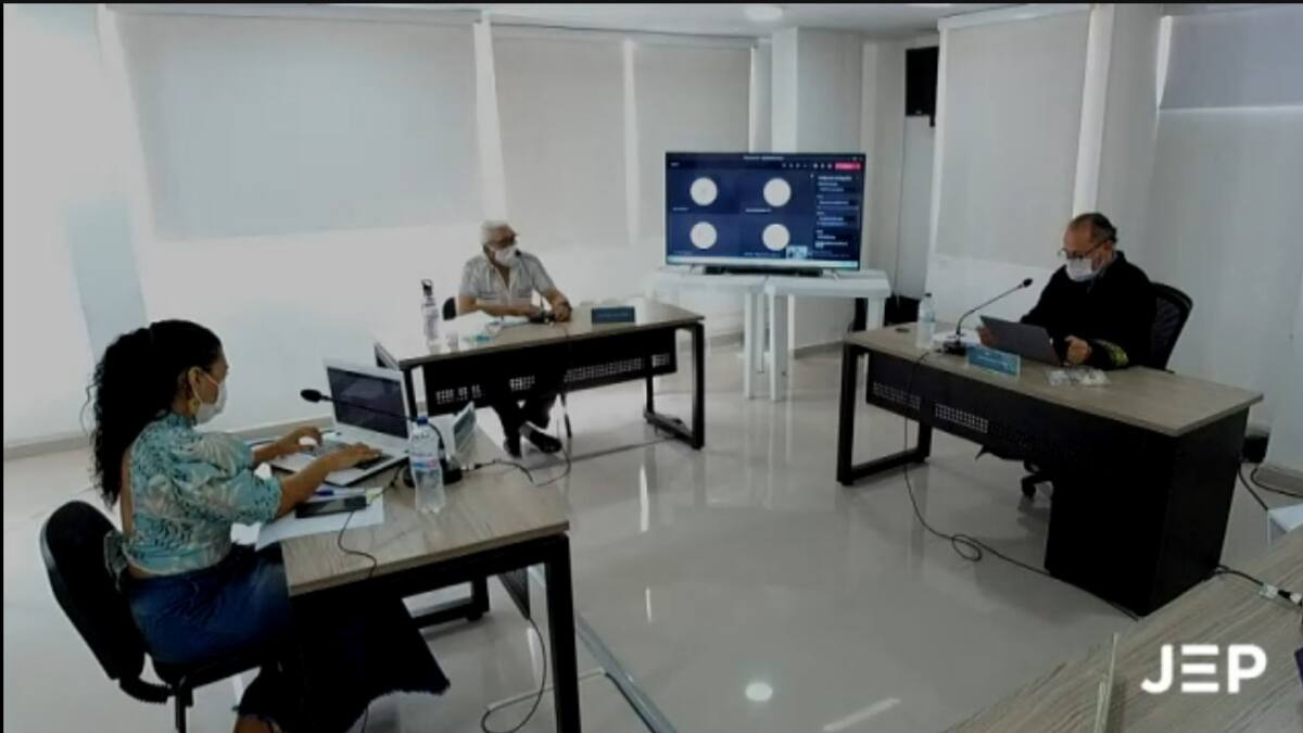 Esta fue presidida por el magistrado Iván González, de la Sala de Reconocimiento de la JEP y, de manera remota, también estaba conectada la magistrada Ana Caterina Heyck.