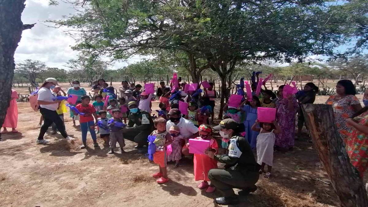 Los uniformados llegaron hasta zonas con espacios abiertos para integrar a niños y niñas graduados del Programa Semilleros de la Legalidad, que son los hijos de los integrantes del Programa Reconversión Laboral y los niños de comunidad wayuu Porvenir II en compañía de sus padres de familia.