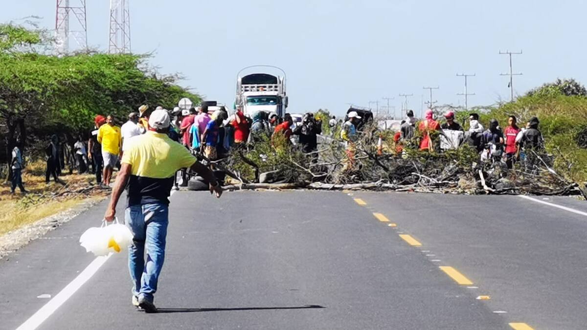 La falta de agua en el corregimiento Camarones de Riohacha generó una protesta que lleva casi todo el día martes con una parálisis en la carretera Troncal del Caribe.