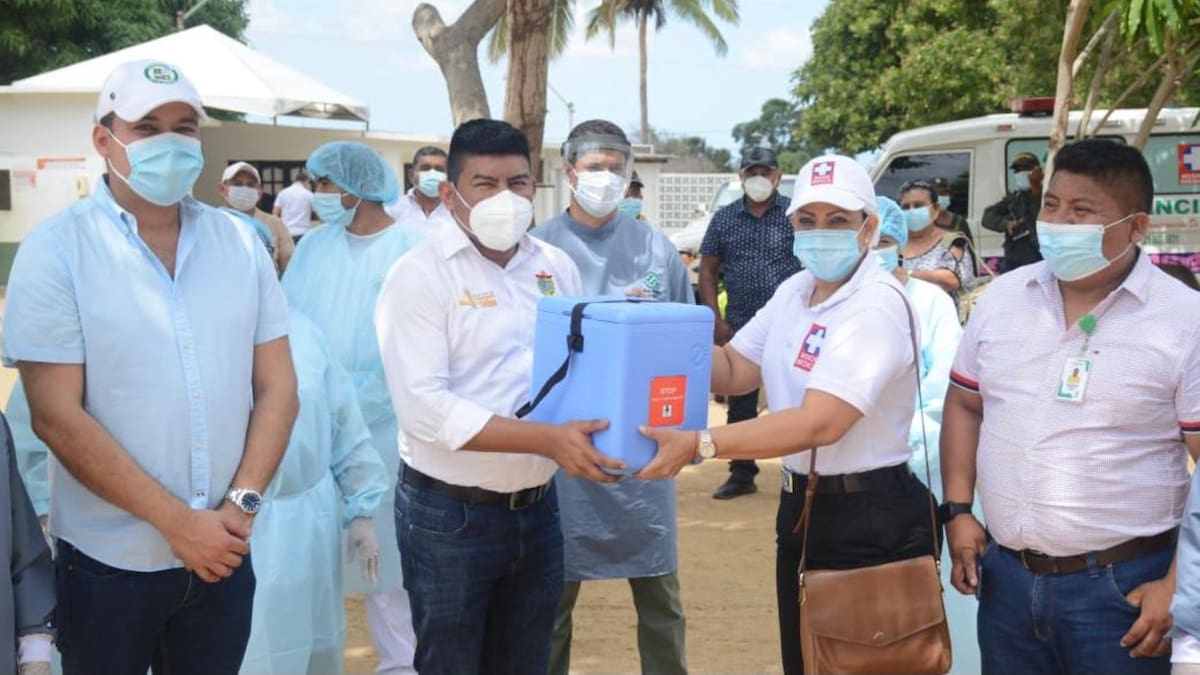 Las dosis fueron recibidas por Calmides González, gerente del hospital de Nazareth, el más disperso del departamento de La Guajira.