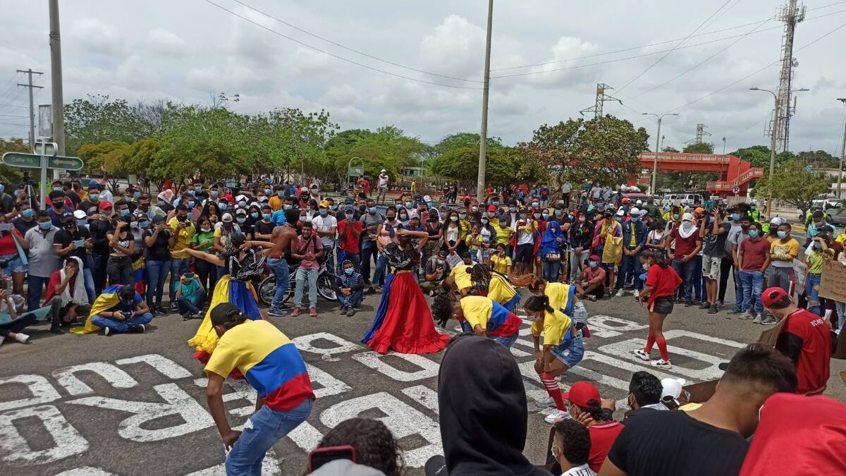 Los manifestantes salieron del parque que está en el barrio Entrerríos, recorrieron la avenida siete hasta llegar al monumento de Francisco El Hombre, donde hubo varias presentaciones artísticas y culturales.