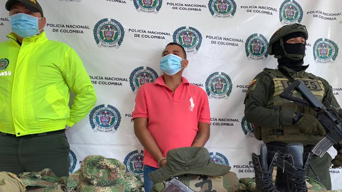 El capturado y los elementos fueron dejados a disposición de la Fiscalía General de la Nación por los delitos de fabricación, tráfico y porte de armas de fuego o municiones y utilización ilícita de uniformes e insignias.