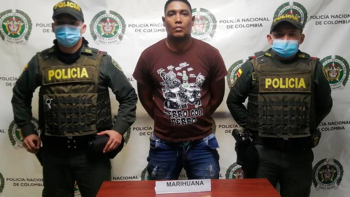 Un joven que transportaba más de cinco libras de marihuana listas para reducirlas a pequeños trozos y así fabricar los 'tabacos’ con los que se hacen las dosis para los adictos, fue capturado por una patrulla del cuadrante que tiene su radio de trabajo entre otros seductores el del barrio Nuevo Horizonte y donde e infractor se transportaba en una motocicleta