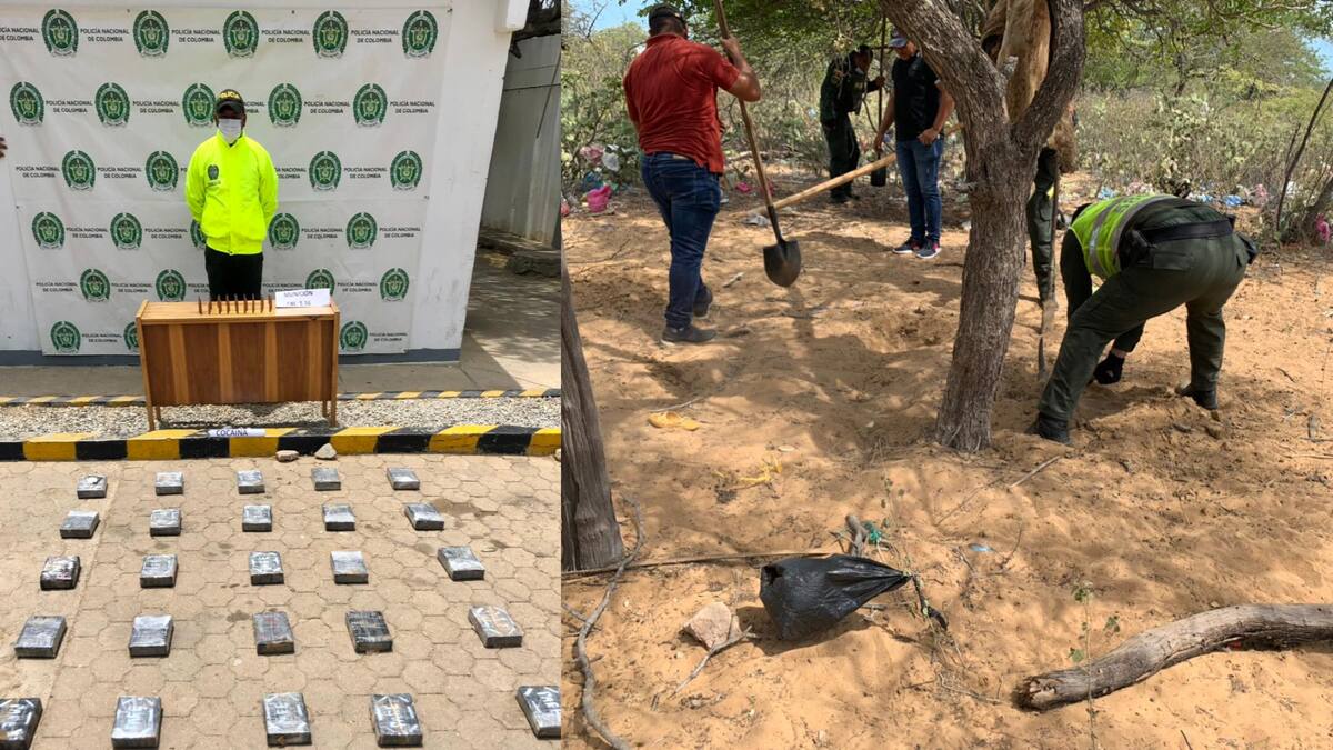 'Según labores investigativas, los grupos criminales dedicados al tráfico de estupefacientes están usando la modalidad de enterrar la droga en menores cantidades en diferentes puntos de La Guajira para evadir la acción de las autoridades, para posteriormente, llevarla a un centro de acopio en La Alta Guajira, de donde sería enviada hasta Centroamérica o Islas del Caribe', dice el comunicado policial.