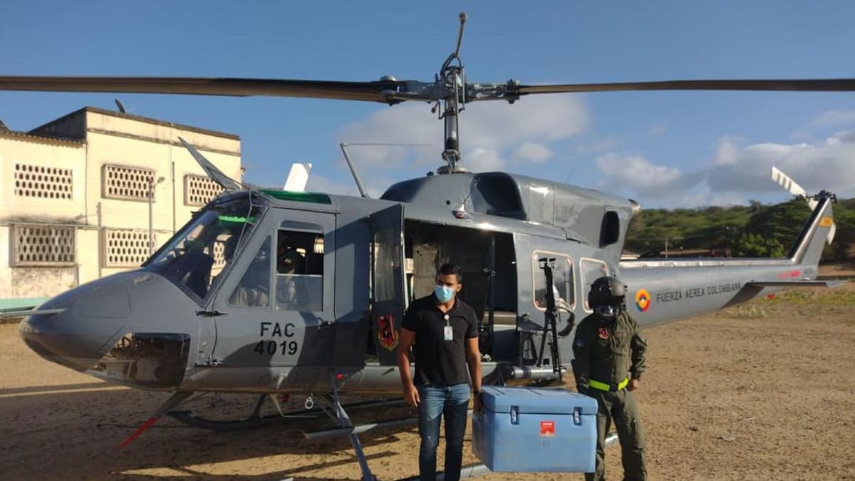 En coordinación con la Alcaldía de Uribia, la Fuerza Aérea Colombiana llevó a la Alta Guajira en helicóptero las primeras vacunas de una única aplicación de Jassen.