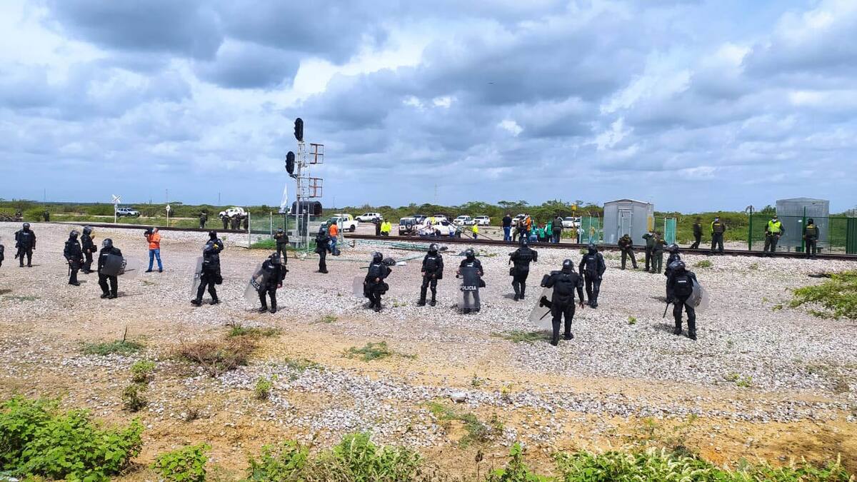 Los huelguistas habían sido visitados por el presidente del sindicato Sintracarbón, Igor Díaz en la mañana, quien les ofreció acompañamiento en el proceso, pero antes del mediodía fueron desalojados de la línea por la que ruedan cada día seis viajes de las locomotoras que arrastran más de cien vagones cada una.