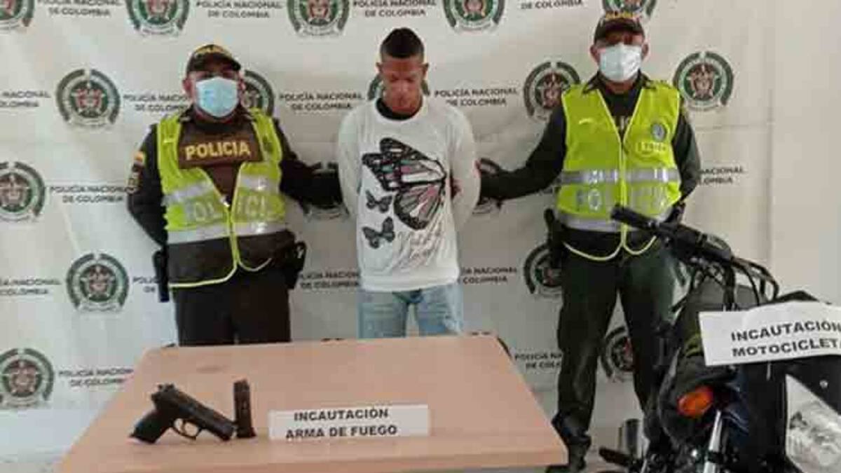La captura se llevó a cabo en el barrio Los Olivos, lugar donde el cuadrante de la Policía observó a un sujeto en una actitud sospechosa a bordo de una motocicleta por lo que los uniformados se dispusieron a someterlo a un registro.
