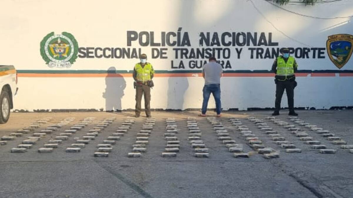 Policías de Tránsito y Transporte de La Guajira incautaron 181 kilogramos de clorhidrato de cocaína que encontraban dentro de un vehículo tipo camión que transportaba pollos sacrificados.