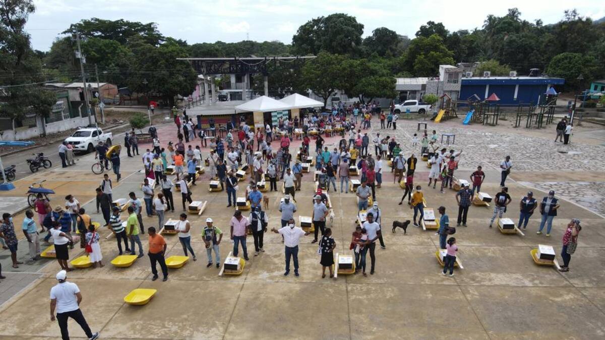 El alcalde de Dibulla, Marlon Amaya Mejía, junto a sus equipos de trabajo de la secretaría de Desarrollo Económico y Competitividad y la Umata municipal, hizo la entrega formal en la plaza 7 de junio en el corregimiento de Mingueo y en la vereda Santa Rita de Jerez, en jurisdicción del corregimiento de La Punta de Los Remedios.