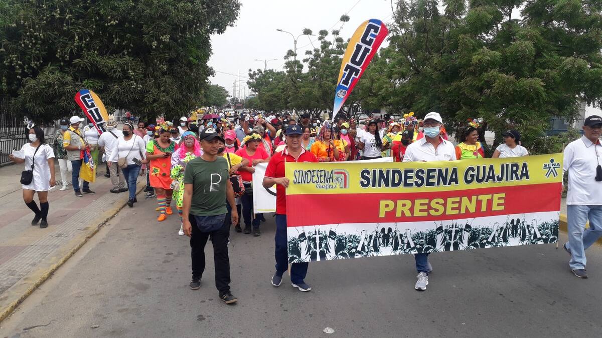 La Central Unitaria de Trabajadores de Colombia y los sindicatos marcharon este domingo por las principales calles de la ciudad de Riohacha.