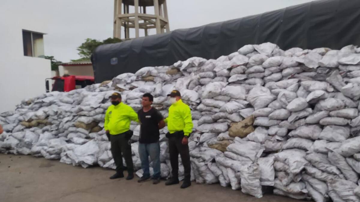 Luego de la revisión del vehículo, se encontraron 2.800 costales del material combustible, cuya comercialización es ilegal.