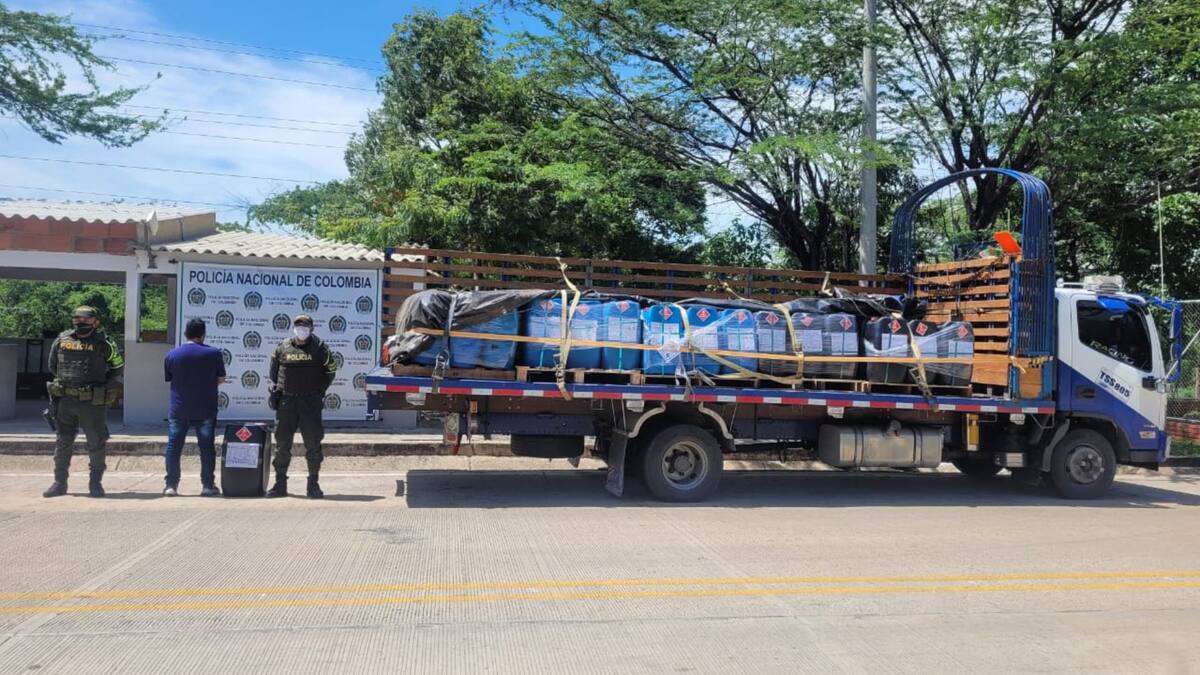 Uniformados de la Policía de La Guajira dieron un duro golpe a las estructuras de tráfico de drogas, al hallar un cargamento de cocaína líquida que era transportada en un camión proveniente de Bogotá, y que estaba empacada en pimpinas de tamaño regular.