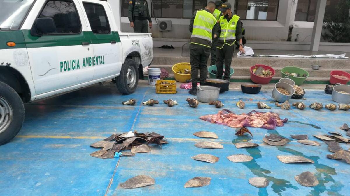 La Policía Nacional, en alianza con Corpoguajira, decomisó 885 kilos de carne de tortuga, en varios operativos llevados a cabo en establecimientos comerciales de Uribia y Riohacha, La Guajira.